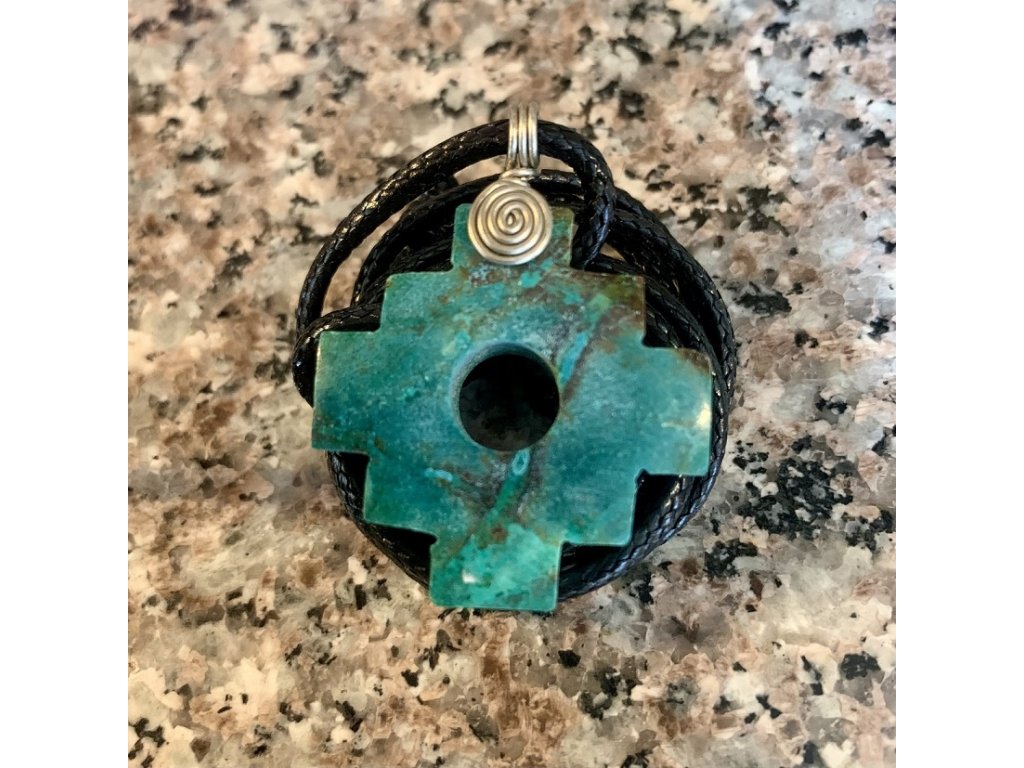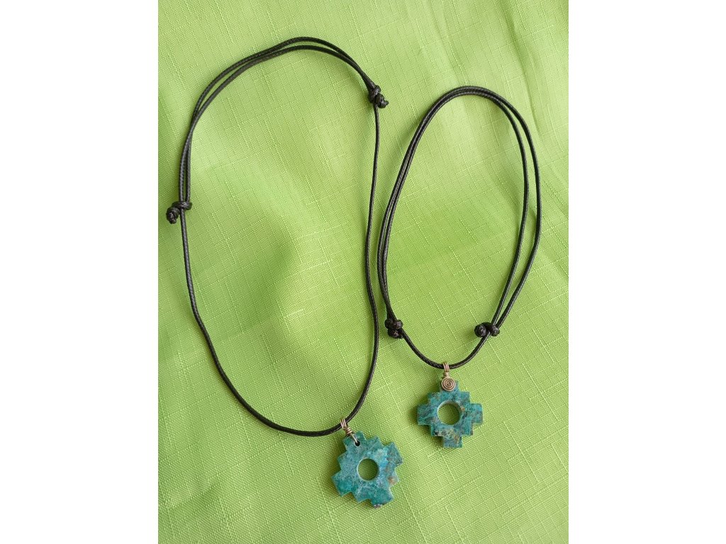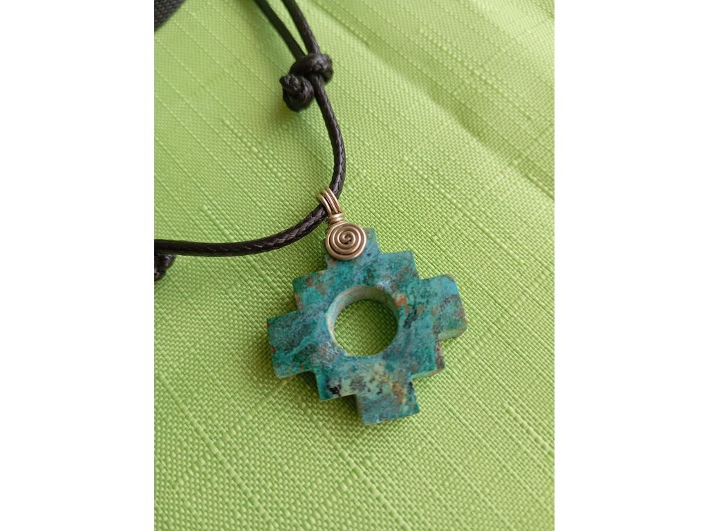Zelenomodrá chakana z méně známého druhu tyrkysu, sbíraného v blízském okolí Machu Picchu.