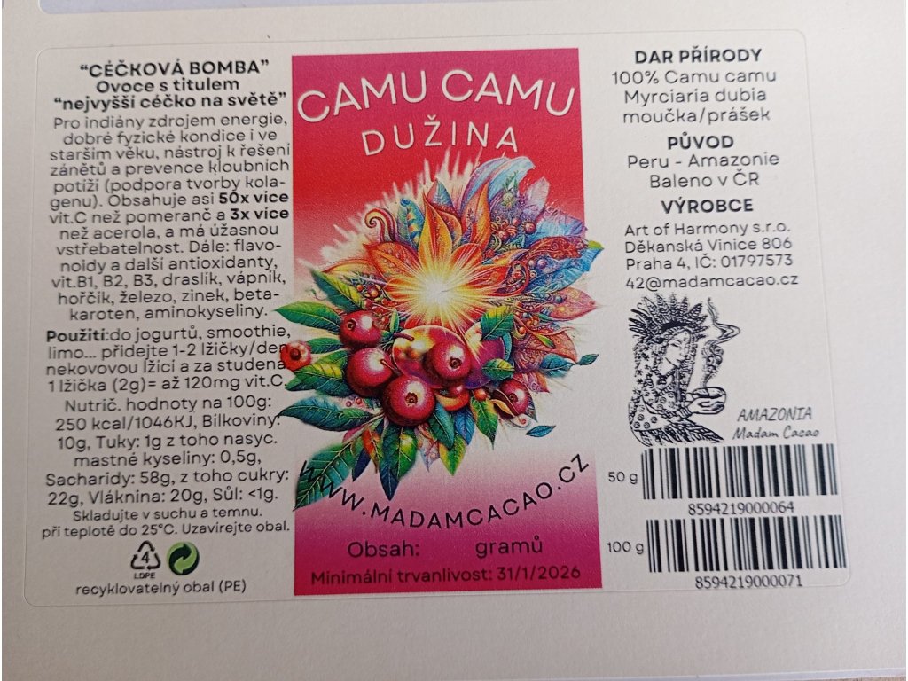 Obsah: 100% Camu Camu, Myricia dubia, sušené a mleté plody stromu