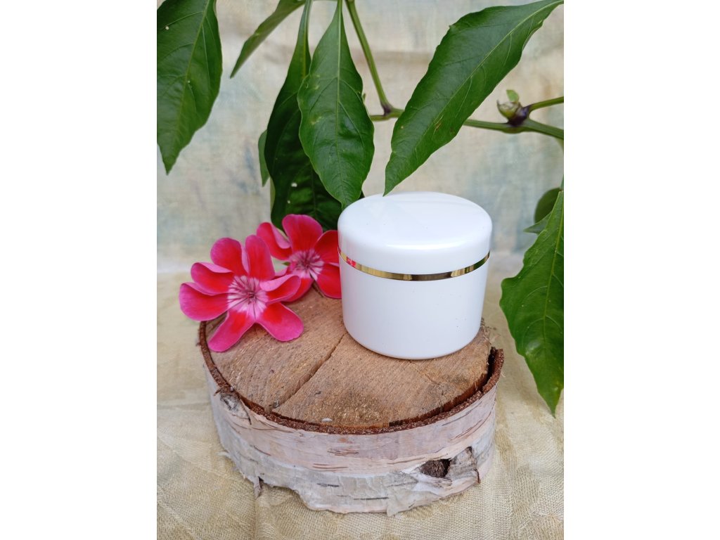 Bílá doza dvoustěnná s bílým víčkem se zlatým proužkem 50ml