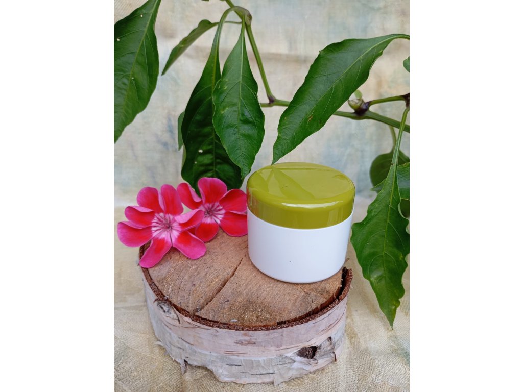 Bílá doza dvoustěnná se světle zeleným víčkem 50ml