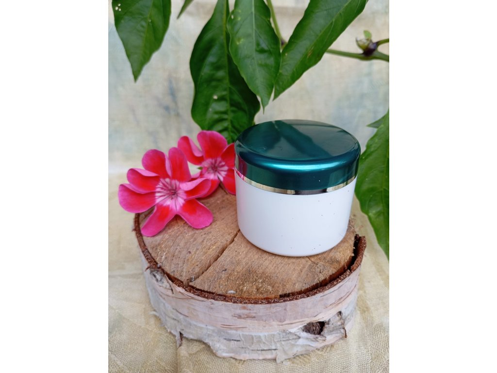 Bílá doza dvoustěnná s tmavě zeleným, metalickým víčkem se stříbrným proužkem 50ml
