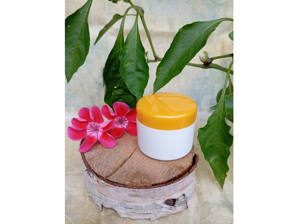 Bílá doza dvoustěnná se žlutým víčkem 50ml