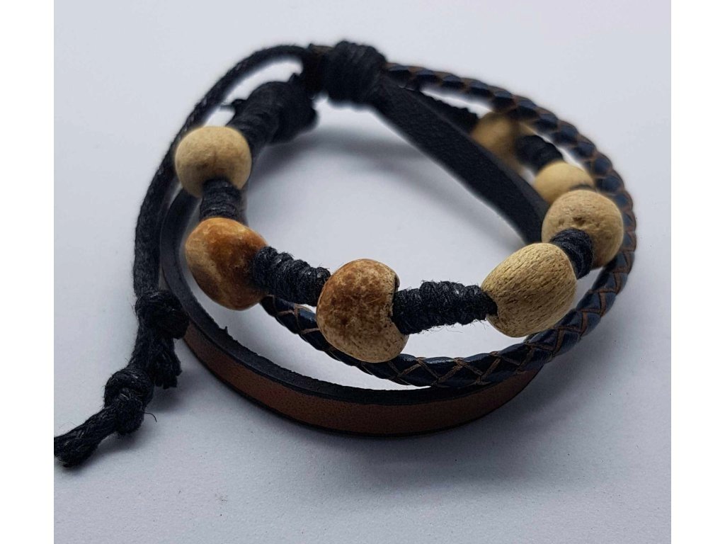 Trojitý kožený náramek s posvátným dřevem Palo Santo, jehož vůně Vás uchvátí