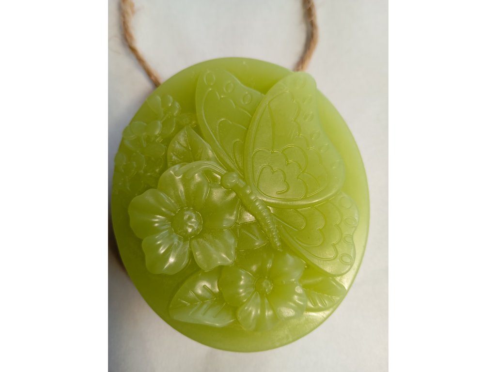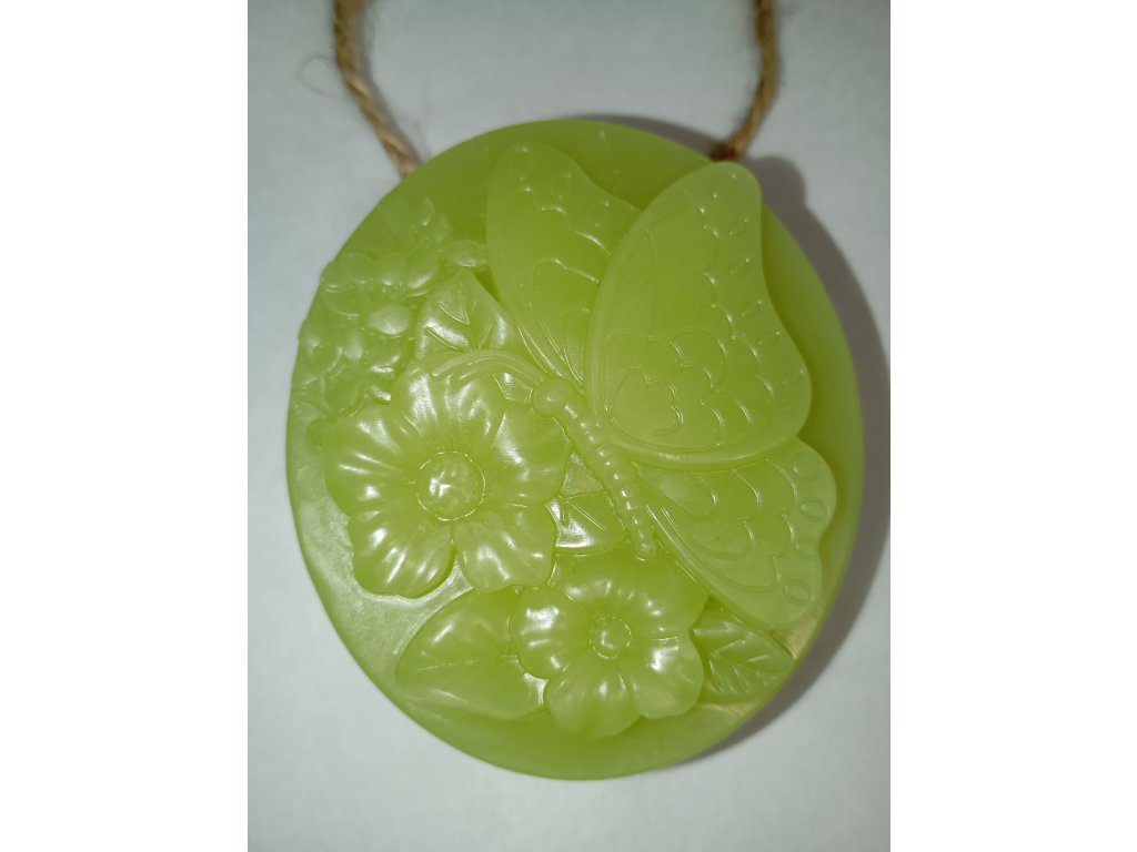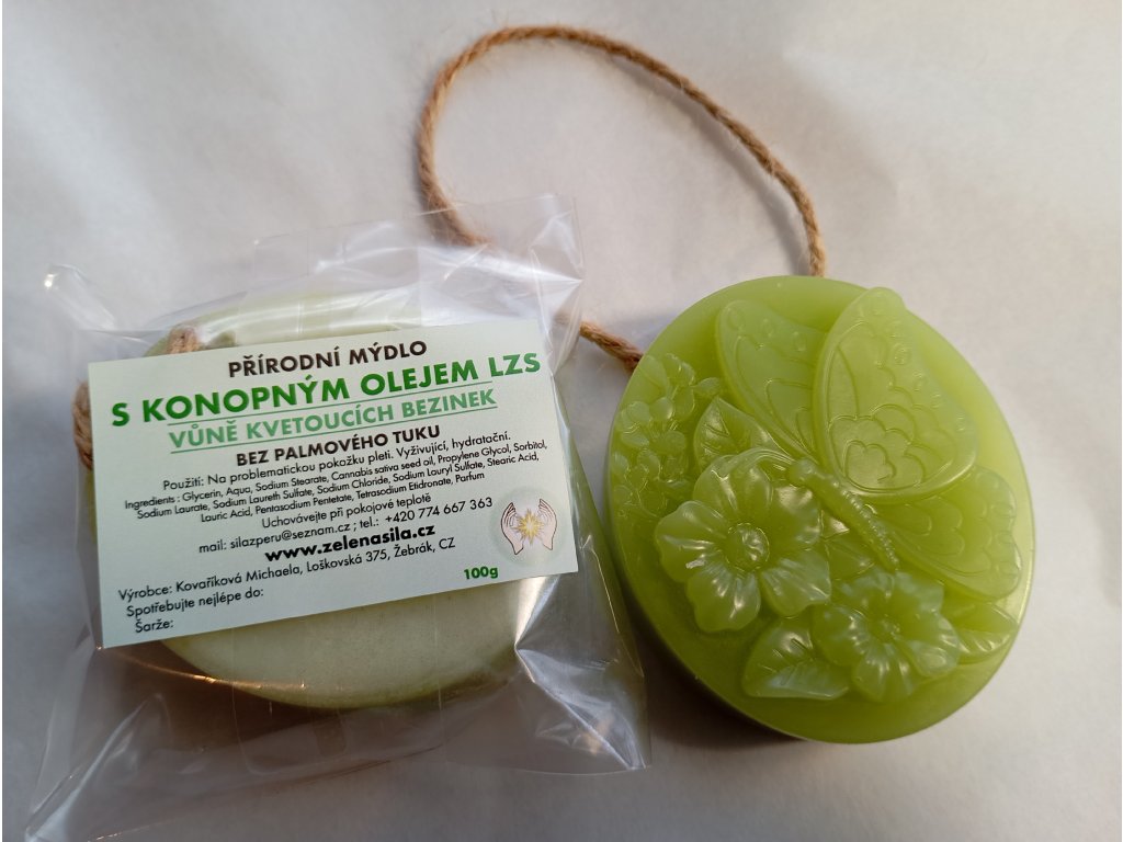 Přírodní mýdlo s konopným olejem a glycerinem. S vůní bezinkových květů. Ekologický obal. Nový design motýl / květy