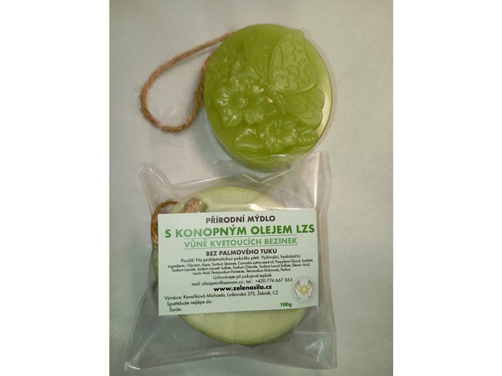 Přírodní mýdlo s konopným olejem - lisovaným za studena a glycerinem. Skvělá kombinace pokožku přirozeně hydratuje a vyživuje.
